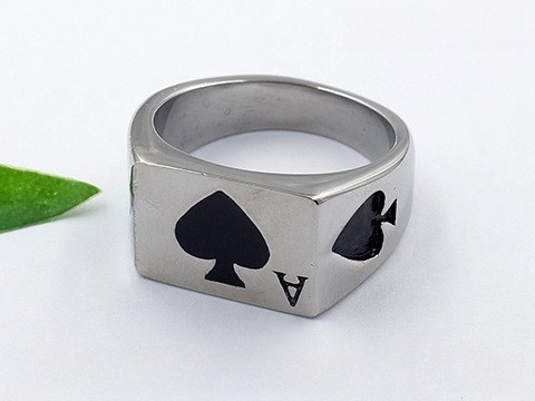 Δαχτυλιδι με ασσο μπαστουνι απο χειρουργικο ατσαλι 316L